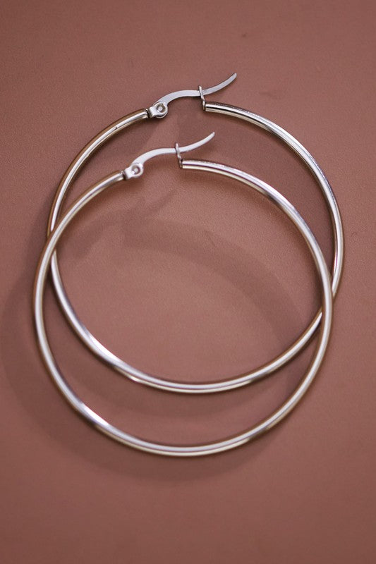 The No Apologies Hoops are designed for days you don’t explain yourself and nights that run longer than planned. Crafted from non-tarnish stainless steel with a smooth, high-shine finish, they hold their shape, color, and edge no matter how often you wear them.